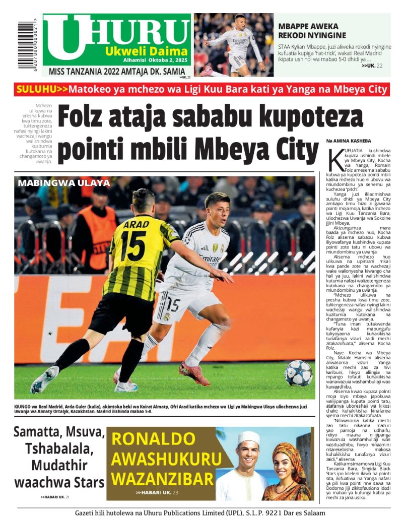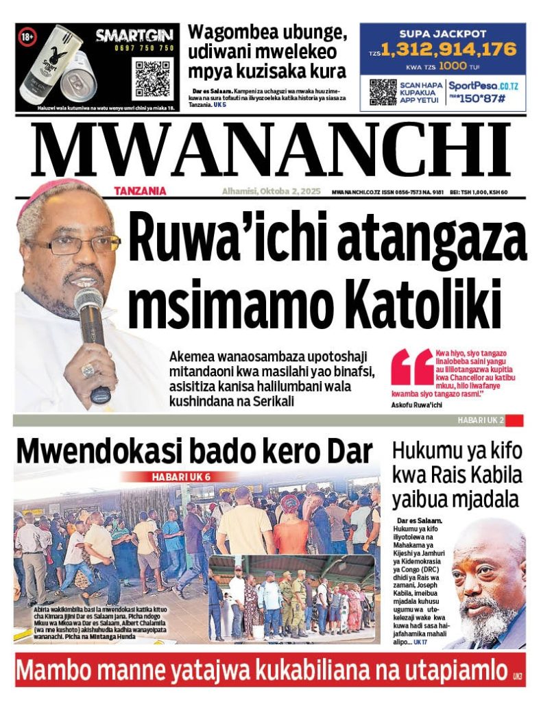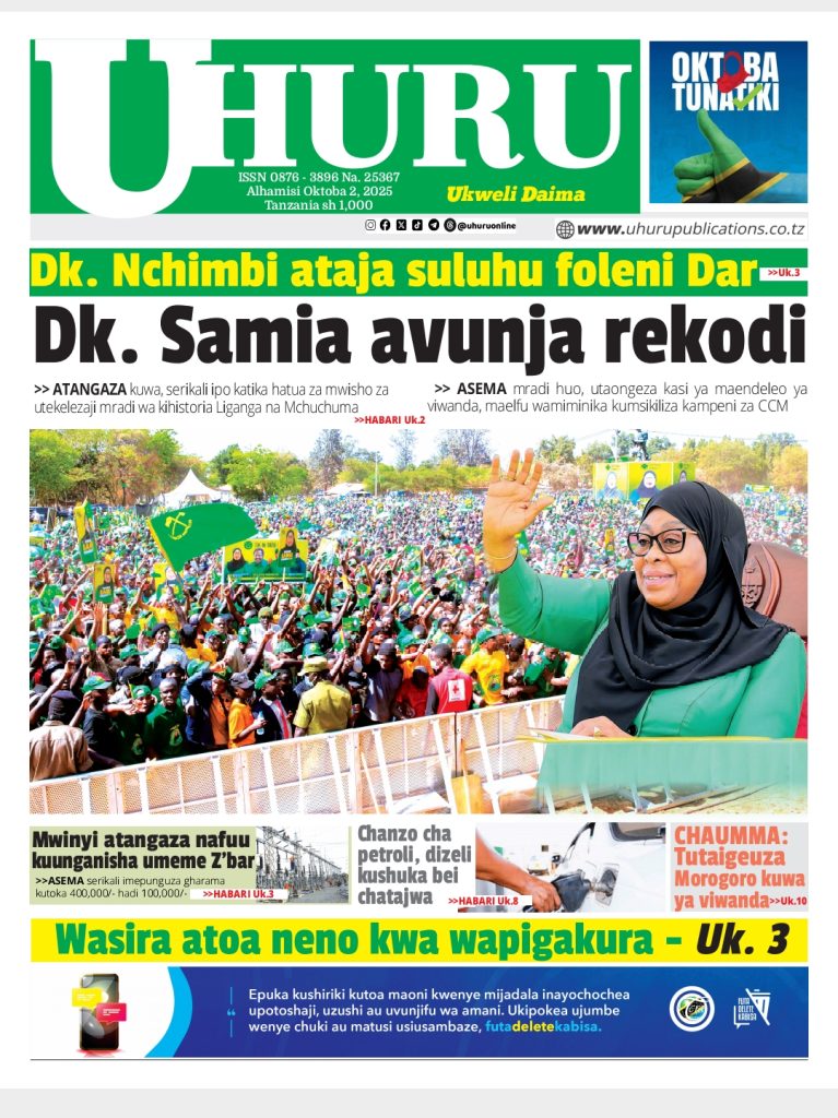 HomeHABARI MAGAZETI YA LEO ALHAMIS OKTOBA 02 , 2025 Misalaba Media October 01, 2025 0 🥃🍶 TUMIA VINYWAJI BORA VYA KAMPUNI YA EAST AFRICAN SPIRITS – BEI RAFIKI, LADHA SAFI BILA HARUFU MBAYA You Might Like View all
