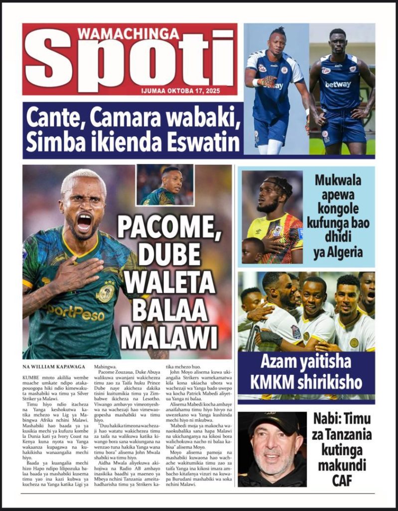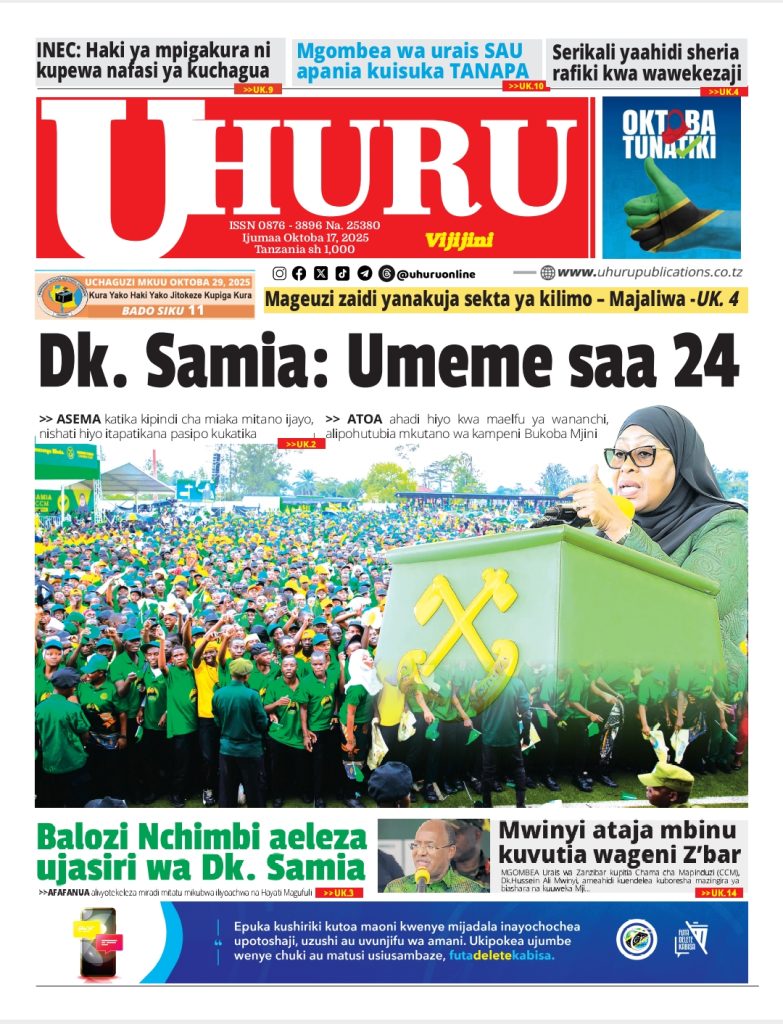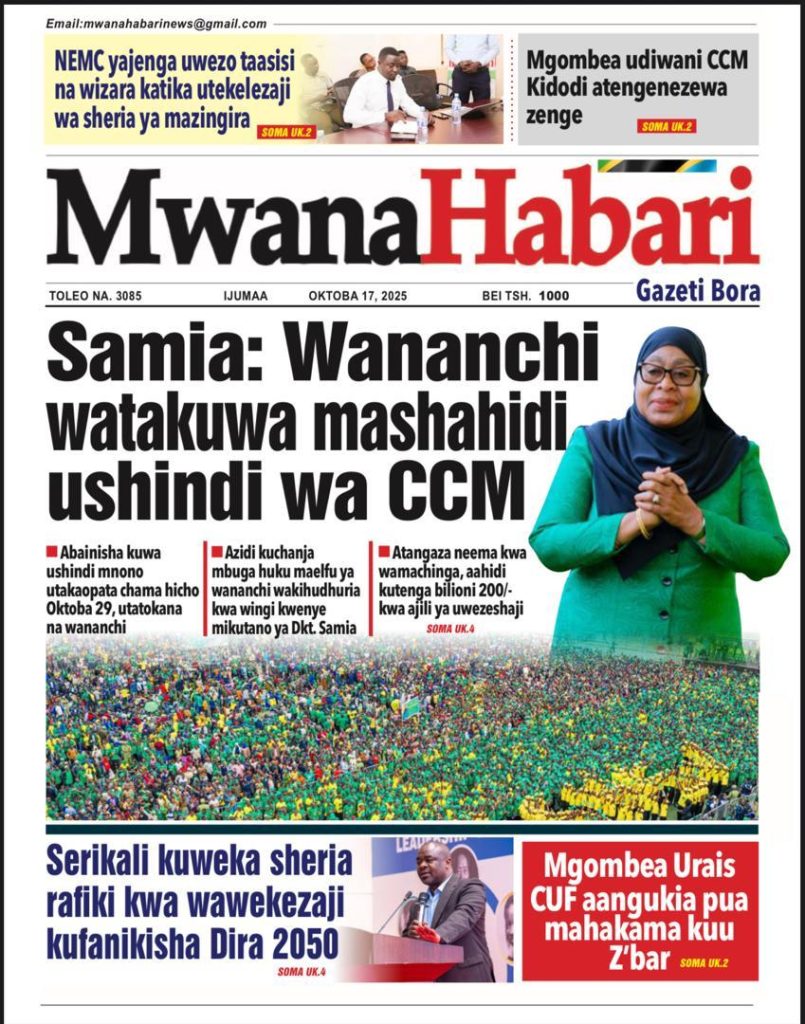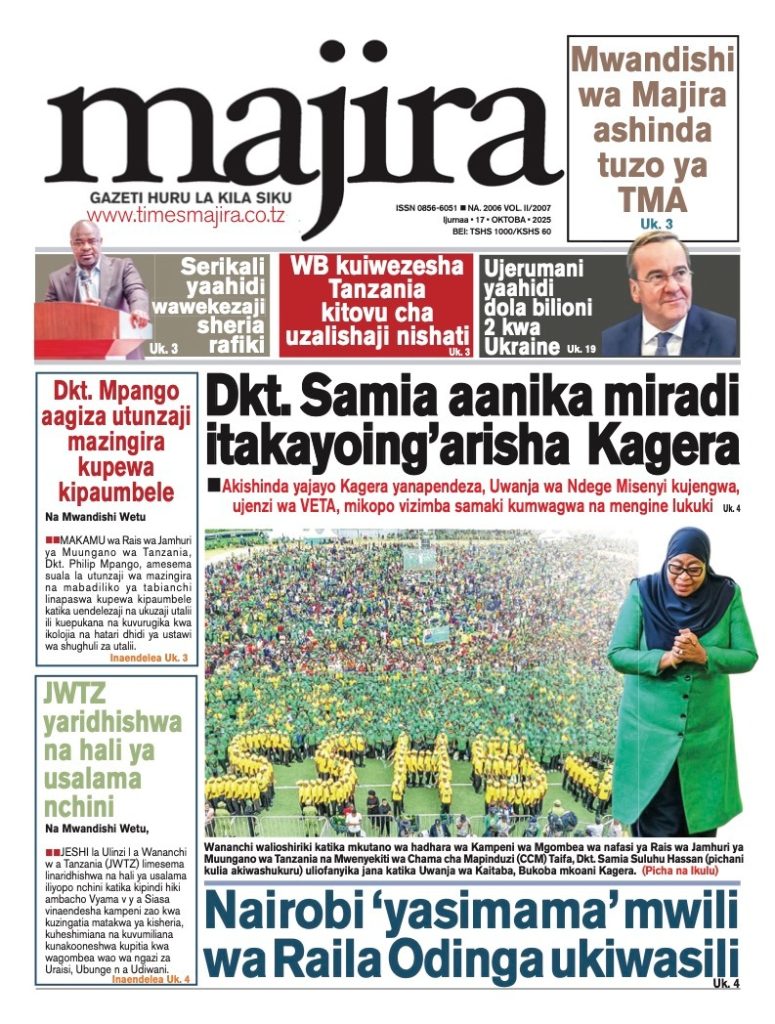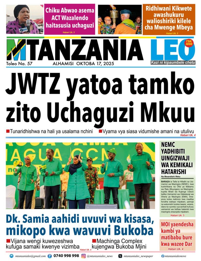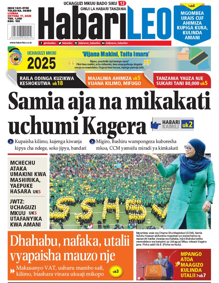 HomeHABARI MAGAZETI YA LEO IJUMAA OKTOB 17,2025 Misalaba Media October 16, 2025 0 🥃🍶 TUMIA VINYWAJI BORA VYA EAST AFRICAN SPIRITS – BEI RAFIKI, LADHA SAFI BILA HARUFU MBAYA You Might Like View all