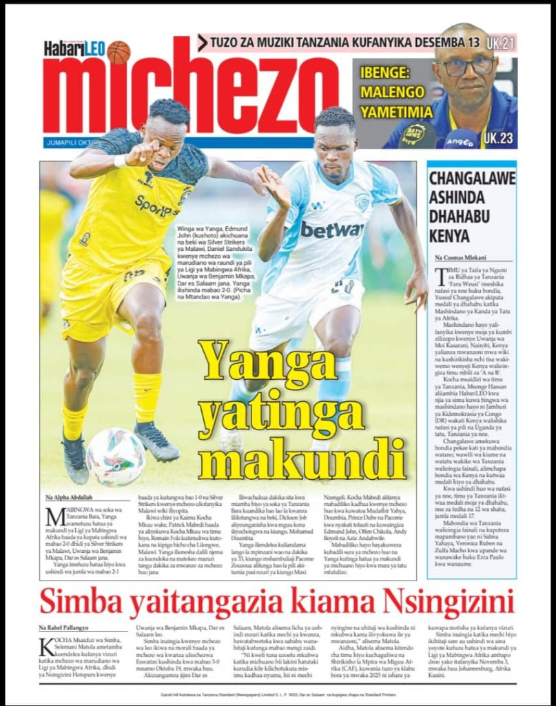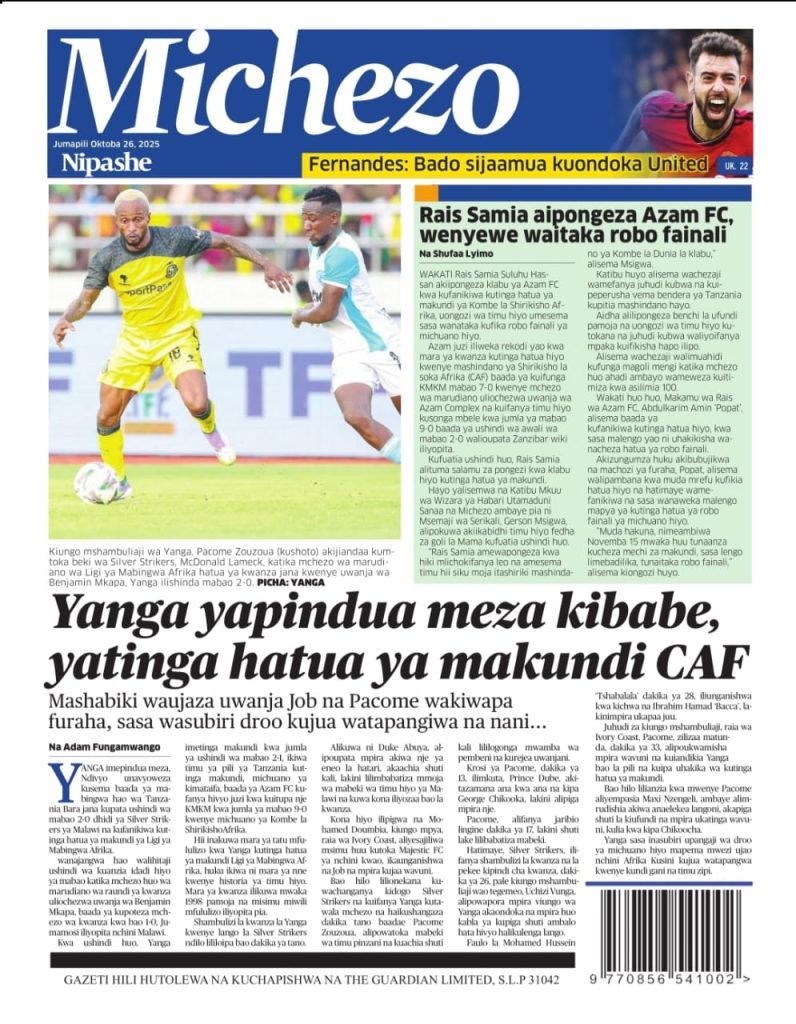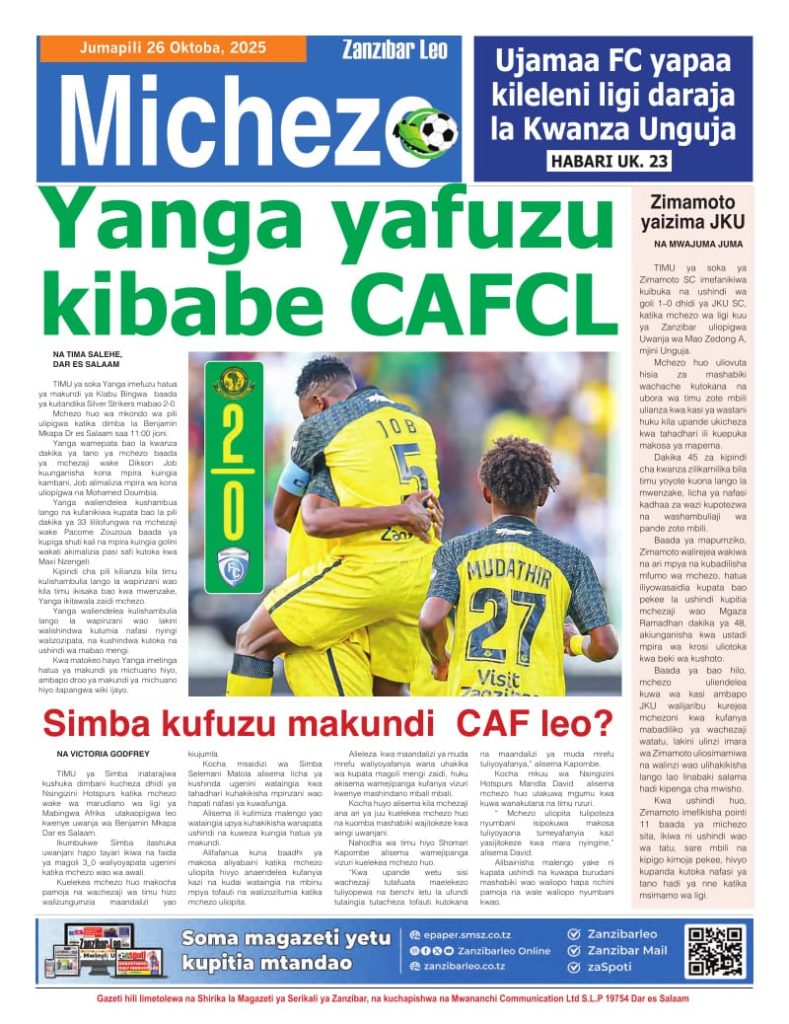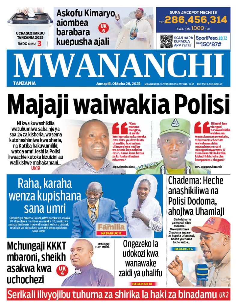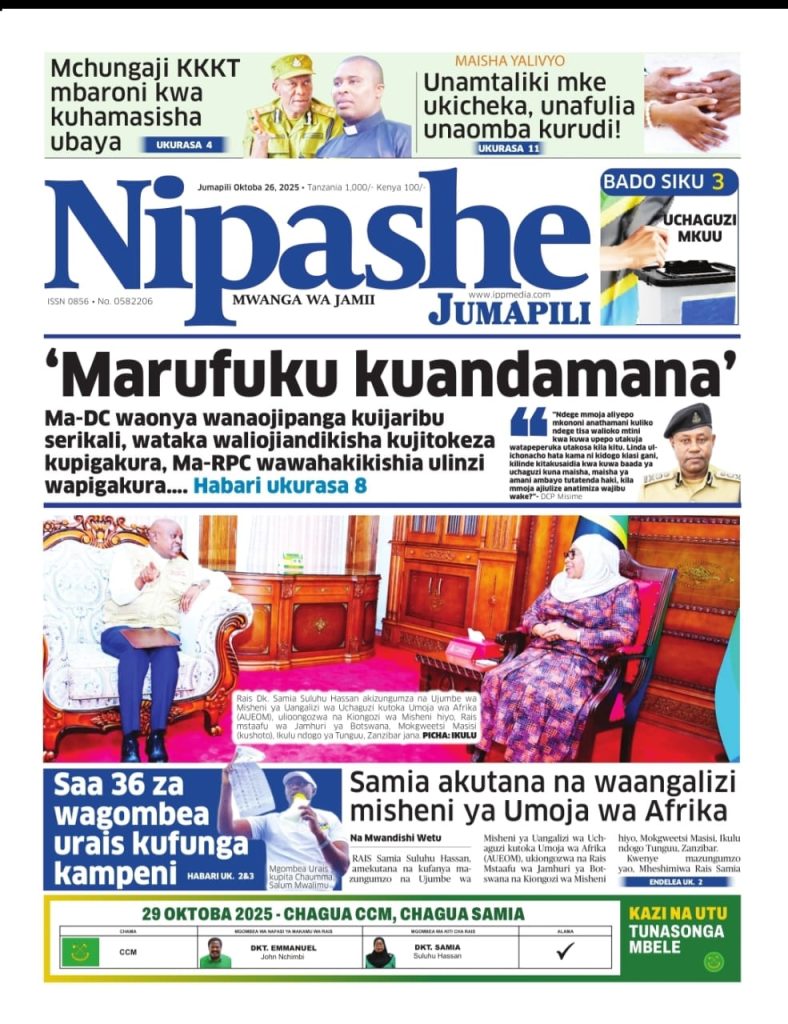 HomeHABARI MAGAZETI YA LEO JUMAPILI OKTOBA 26, 2025 Misalaba Media October 25, 2025 0 🥃🍶 TUMIA VINYWAJI BORA VYA EAST AFRICAN SPIRITS – BEI RAFIKI, LADHA SAFI BILA HARUFU MBAYA You Might Like View all