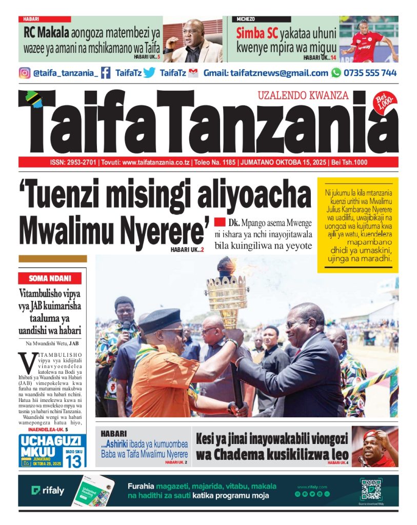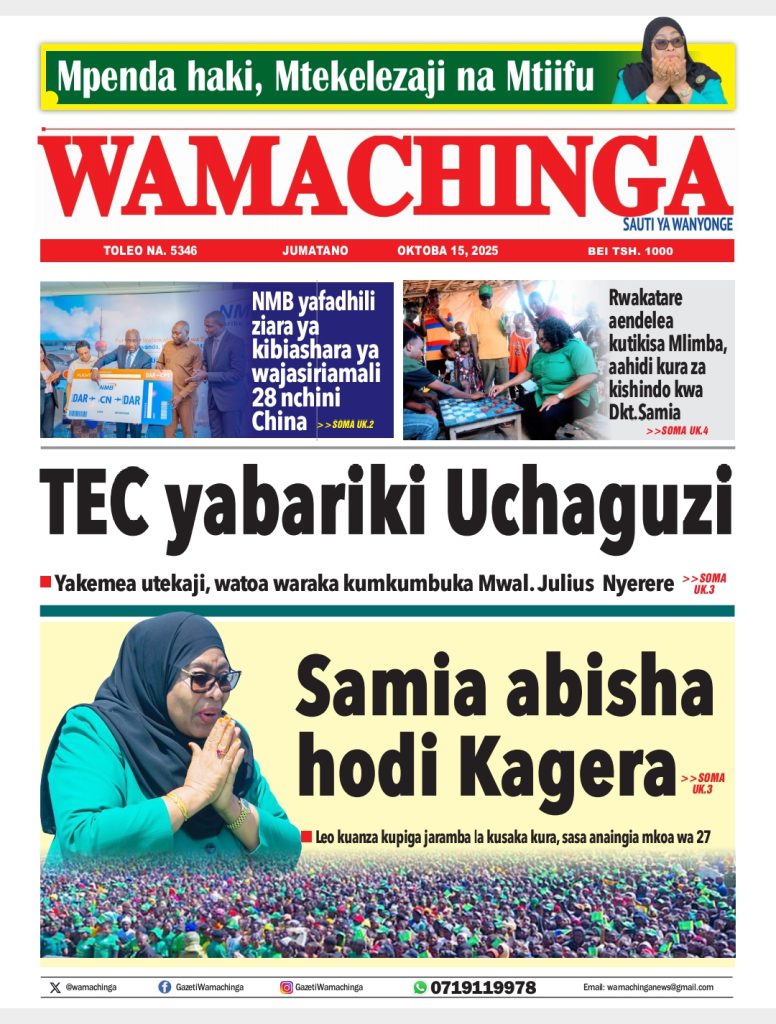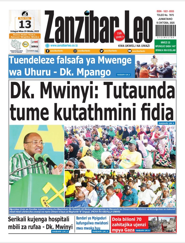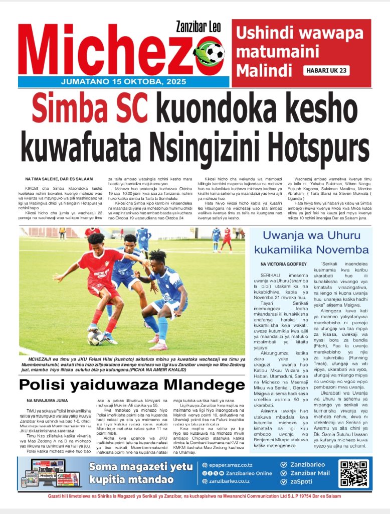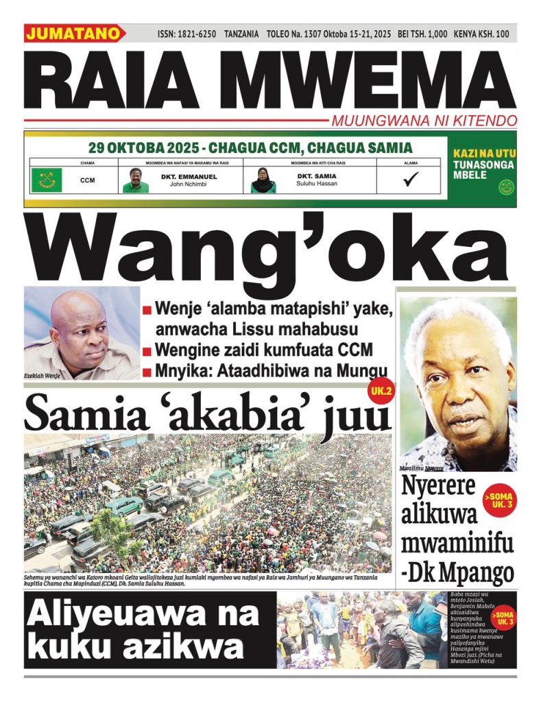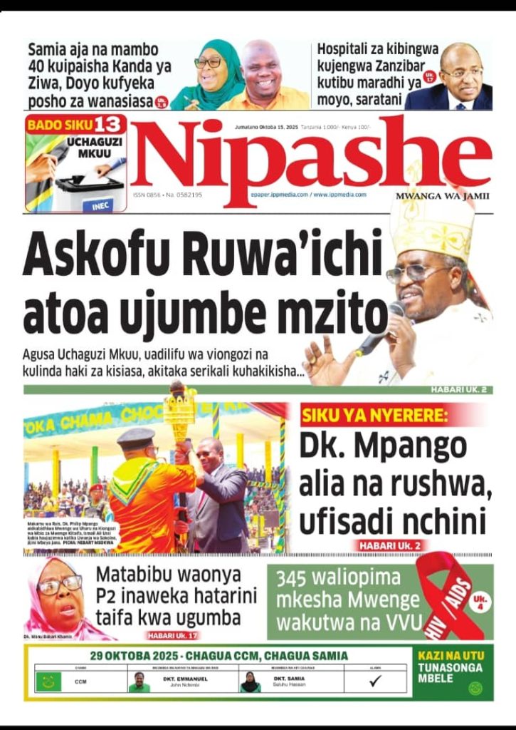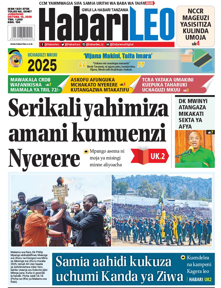 HomeHABARI MAGAZETI YA LEO JUMATANO OKTOBA 15, 2025 Misalaba Media October 14, 2025 0 🥃🍶 TUMIA VINYWAJI BORA VYA EAST AFRICAN SPIRITS – BEI RAFIKI, LADHA SAFI BILA HARUFU MBAYA You Might Like View all