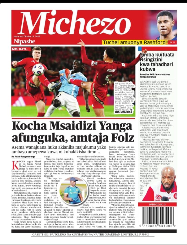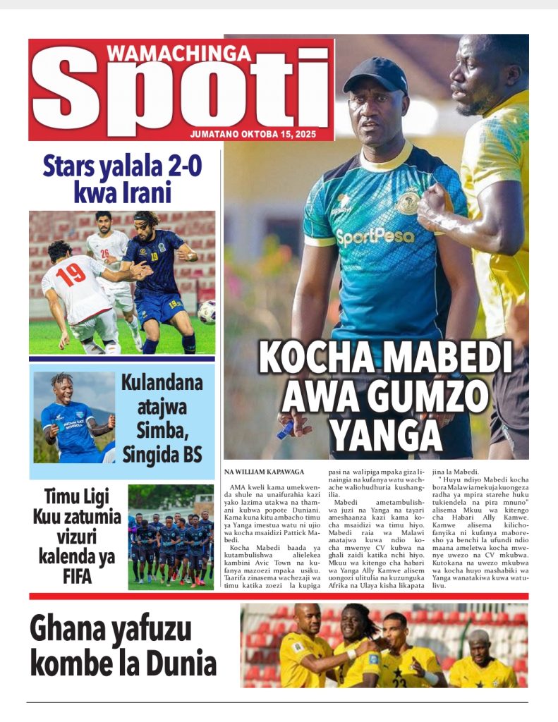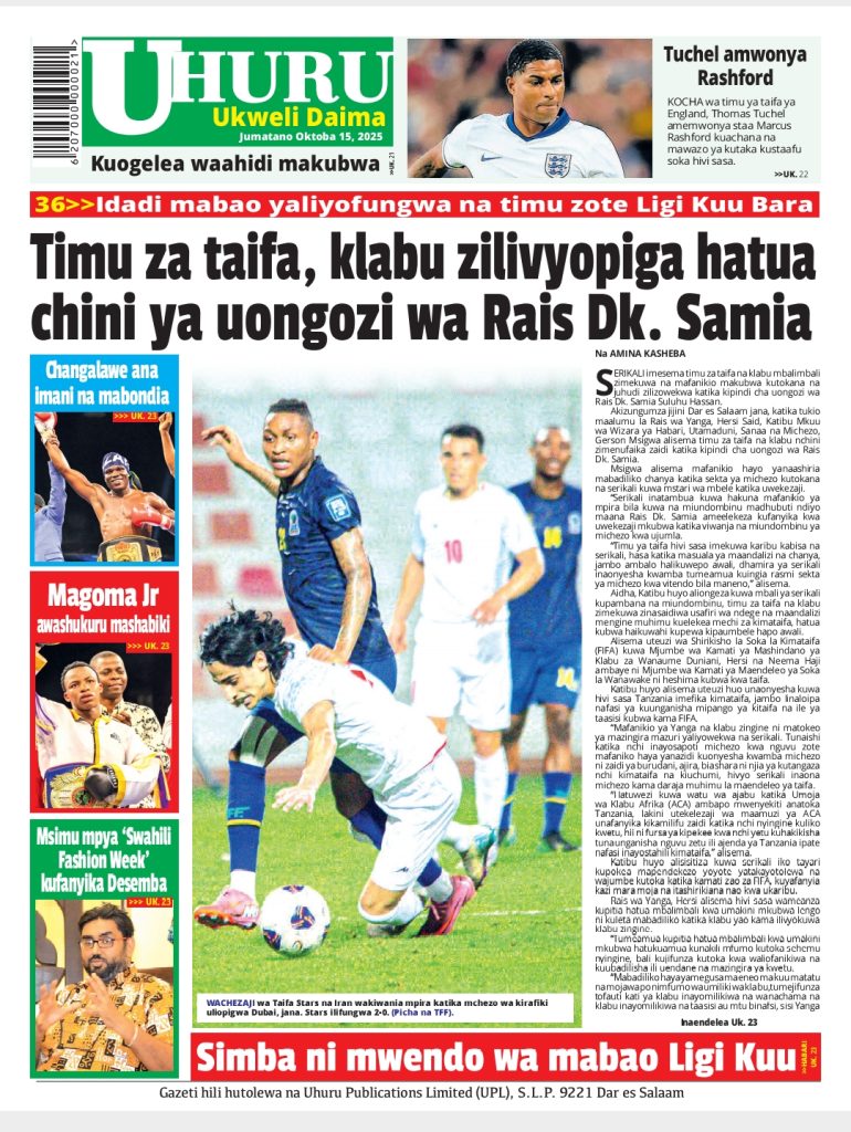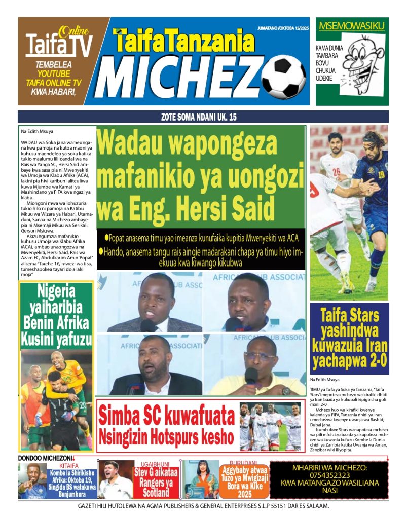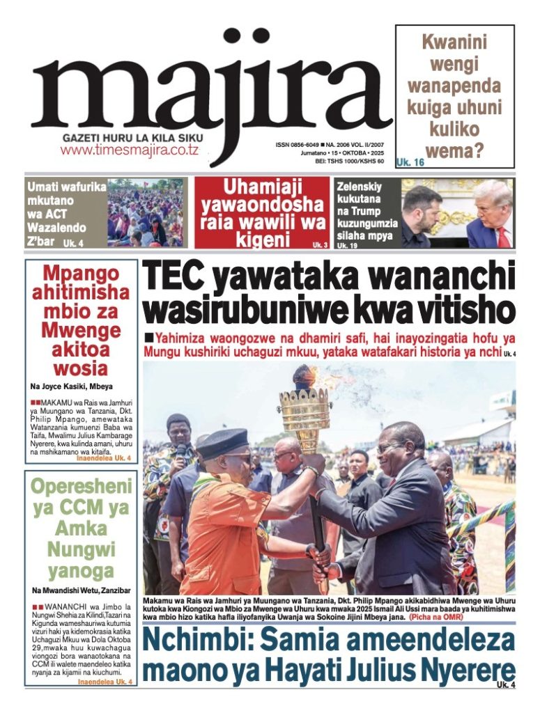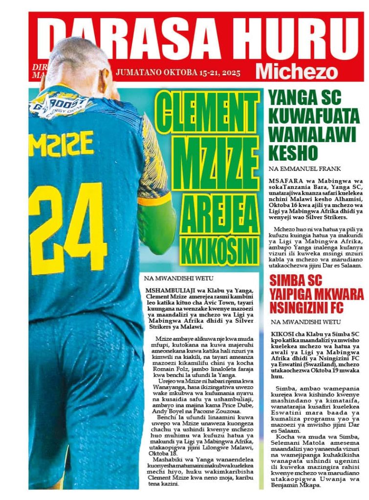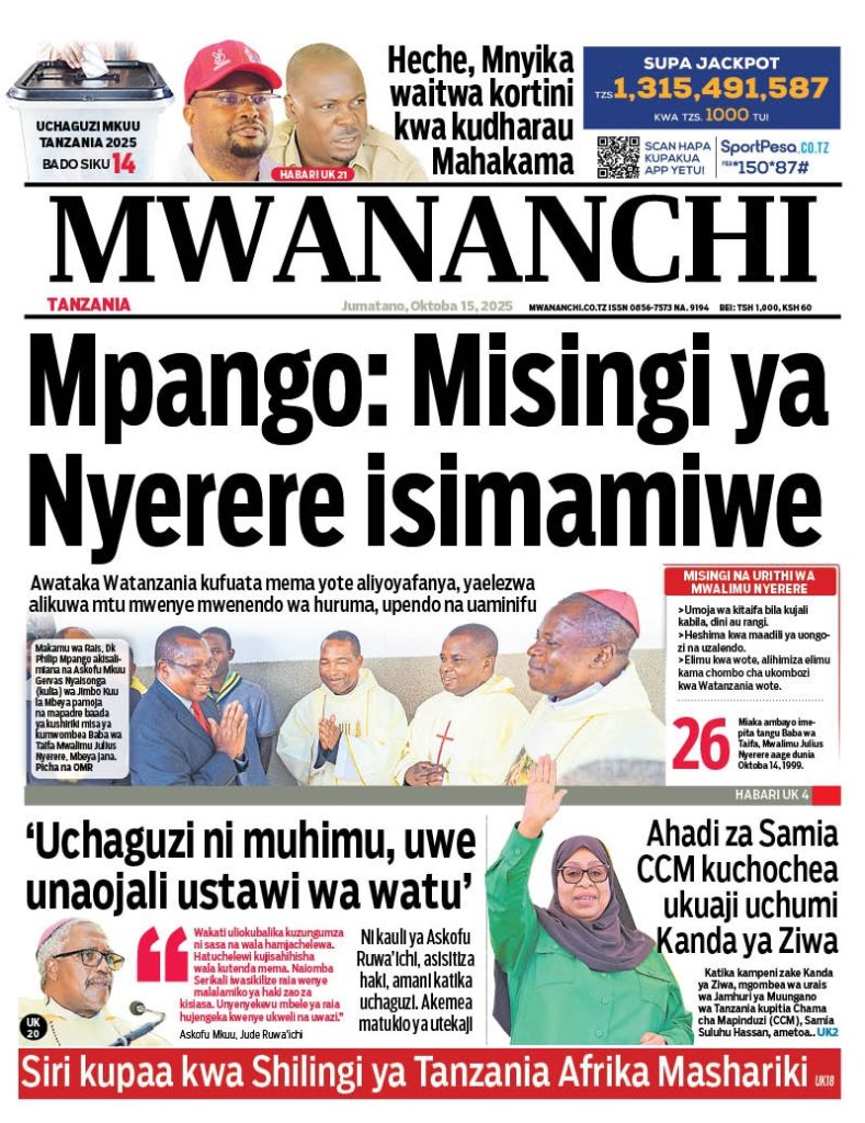 HomeHABARI MAGAZETI YA LEO JUMATANO OKTOBA 15, 2025 Misalaba Media October 14, 2025 0 🥃🍶 TUMIA VINYWAJI BORA VYA EAST AFRICAN SPIRITS – BEI RAFIKI, LADHA SAFI BILA HARUFU MBAYA You Might Like View all