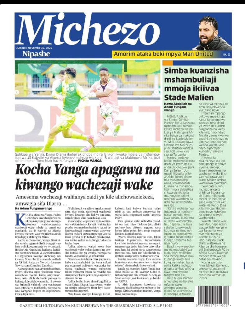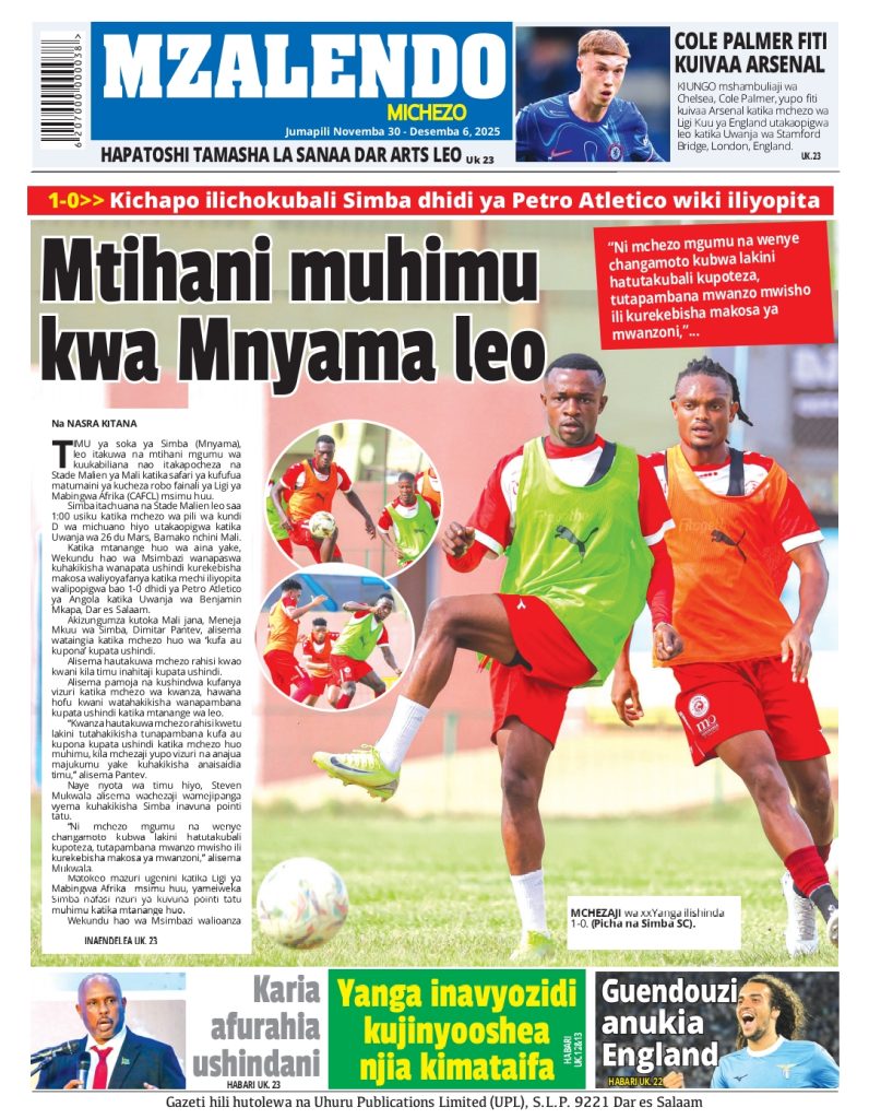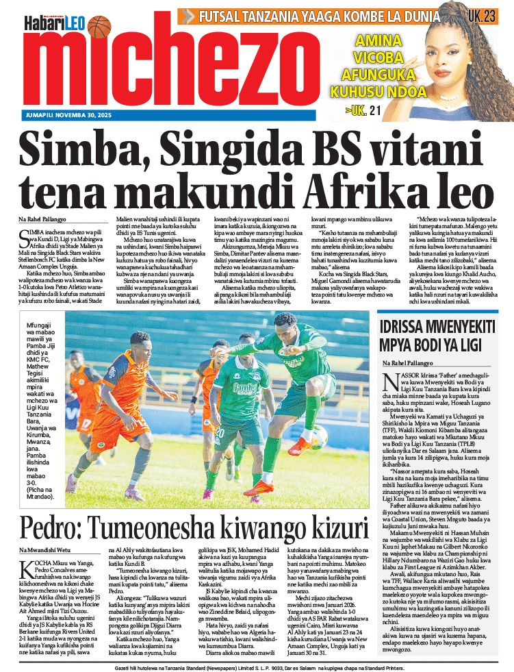 HomeHABARI MAGAZETI YA LEO JUMAPILI NOVEMBA 30, 2025 Misalaba Media November 29, 2025 0 🥃🍶 TUMIA VINYWAJI BORA VYA EAST AFRICAN SPIRITS – BEI RAFIKI, LADHA SAFI BILA HARUFU MBAYAWasiliana nasi:📍 East African Spirits (T) Ltd📞 +255 767 650 806 | +255 652 096 254 You Might Like View all