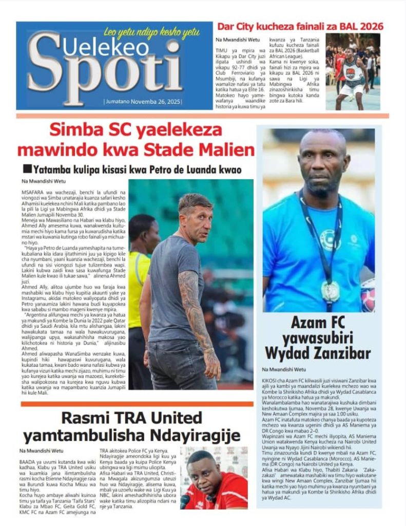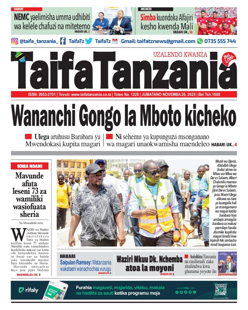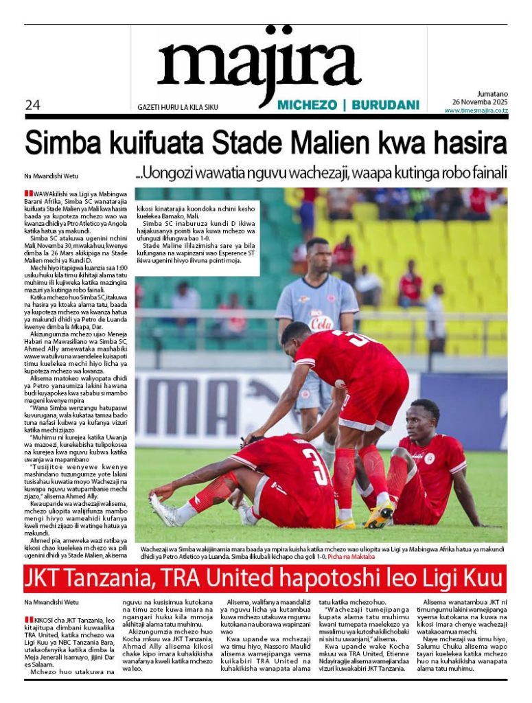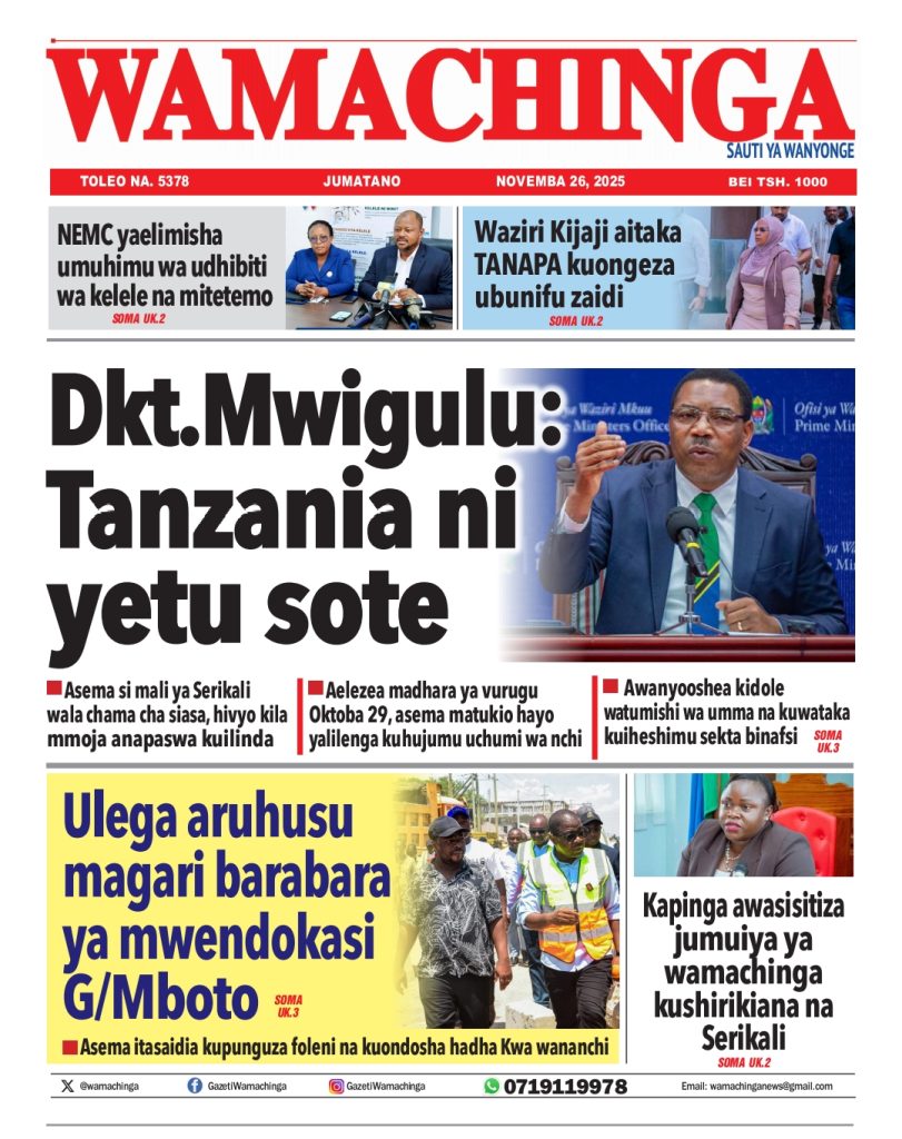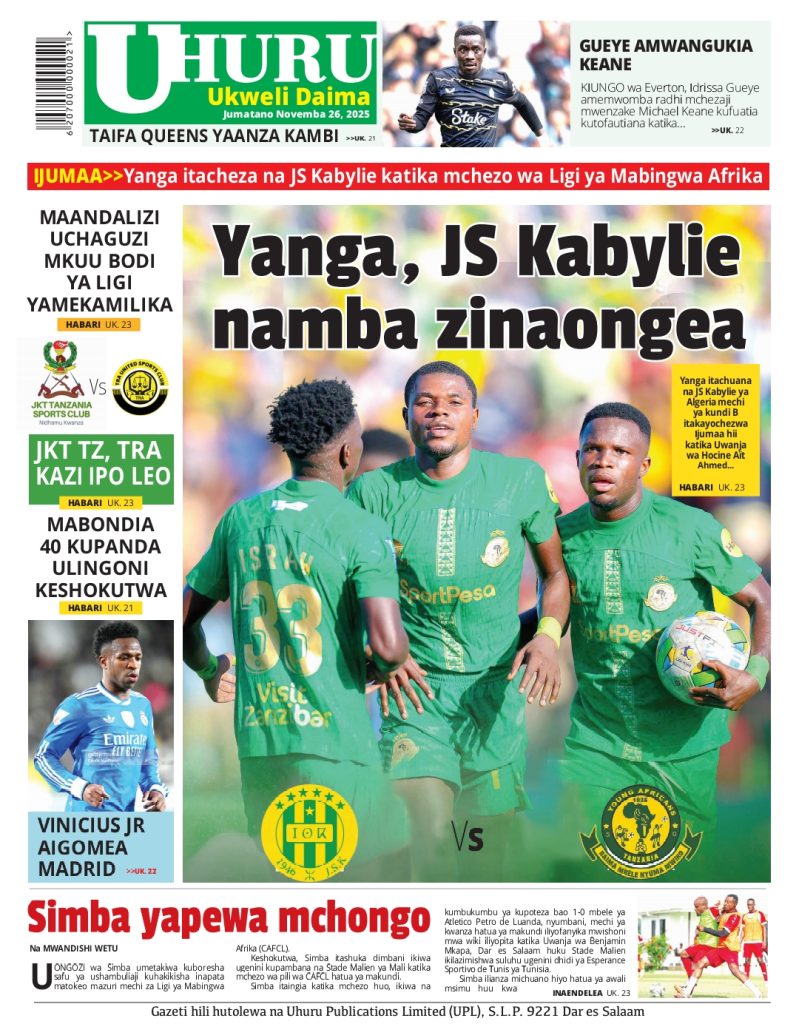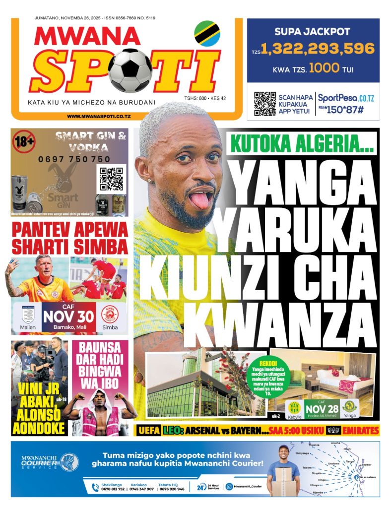 HomeHABARI MAGAZETI YA LEO JUMATANO NOVEMBA 26, 2025 Misalaba Media November 25, 2025 0 🥃🍶 TUMIA VINYWAJI BORA VYA EAST AFRICAN SPIRITS – BEI RAFIKI, LADHA SAFI BILA HARUFU MBAYAWasiliana nasi:📍 East African Spirits (T) Ltd📞 +255 767 650 806 | +255 652 096 254 You Might Like View all