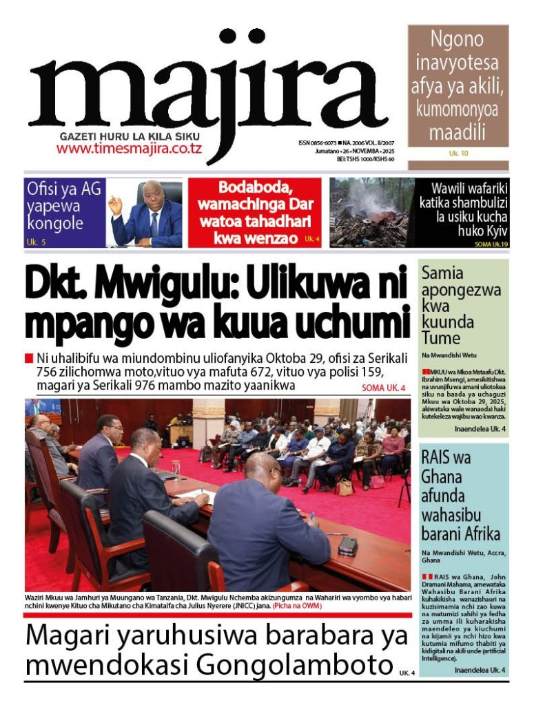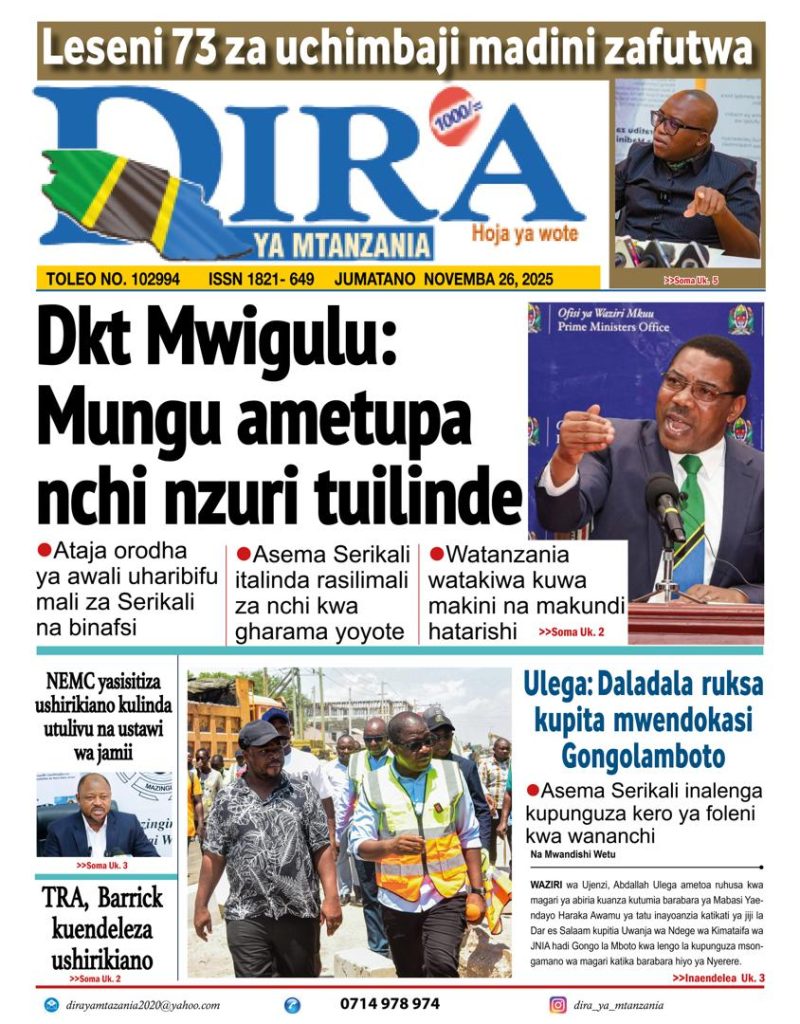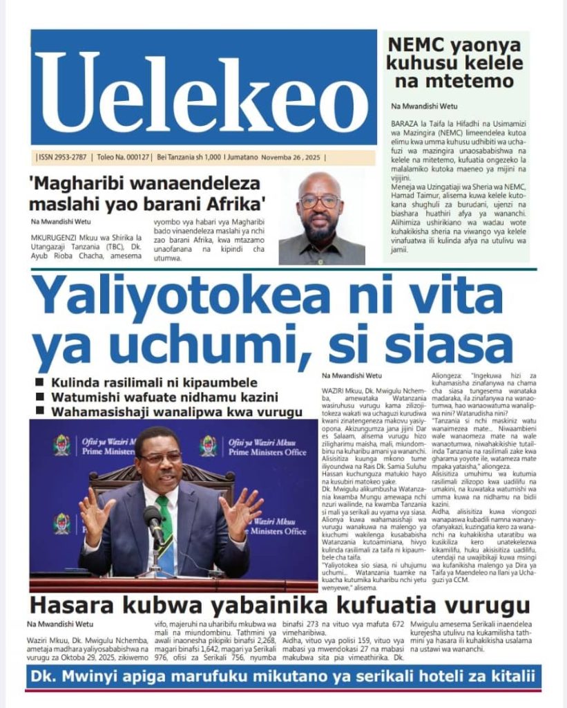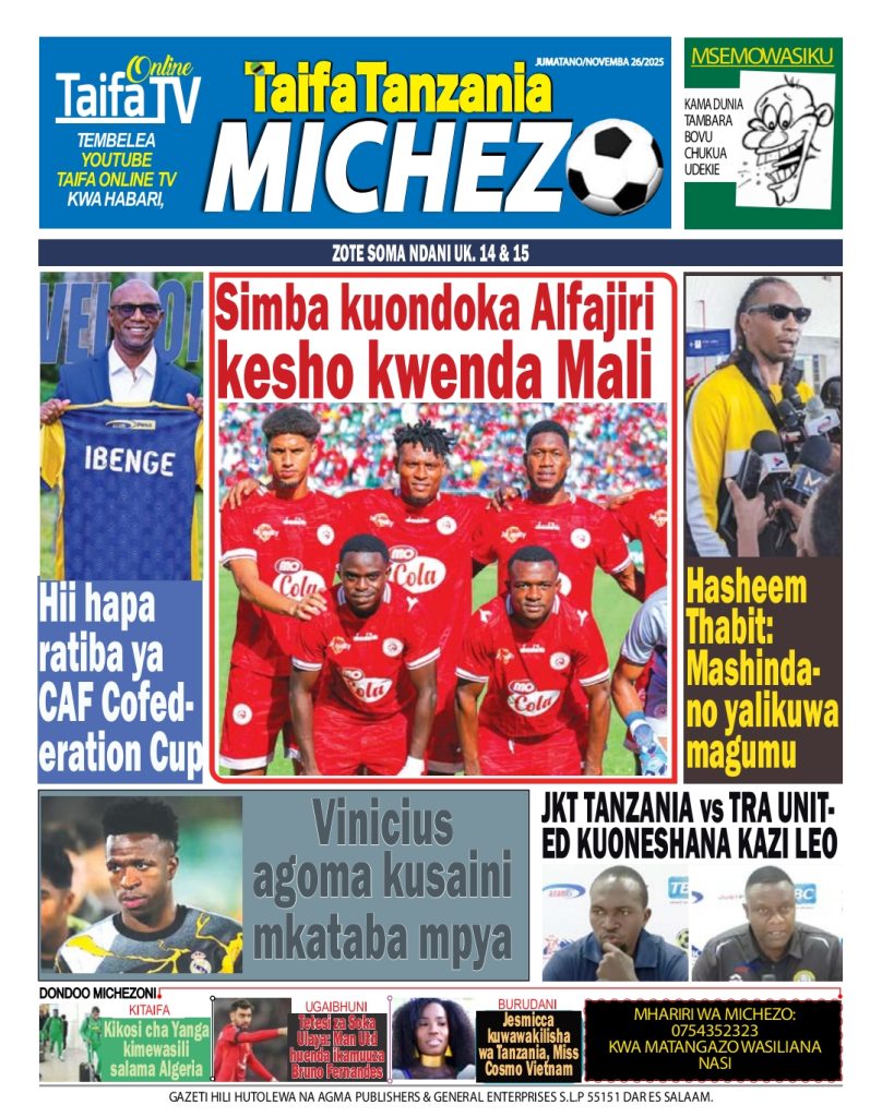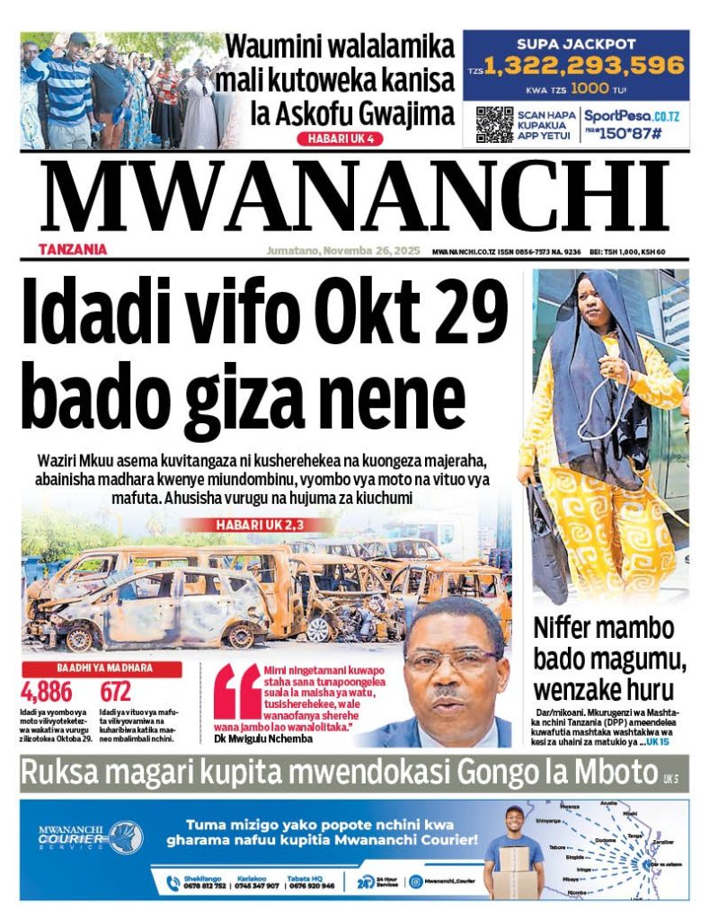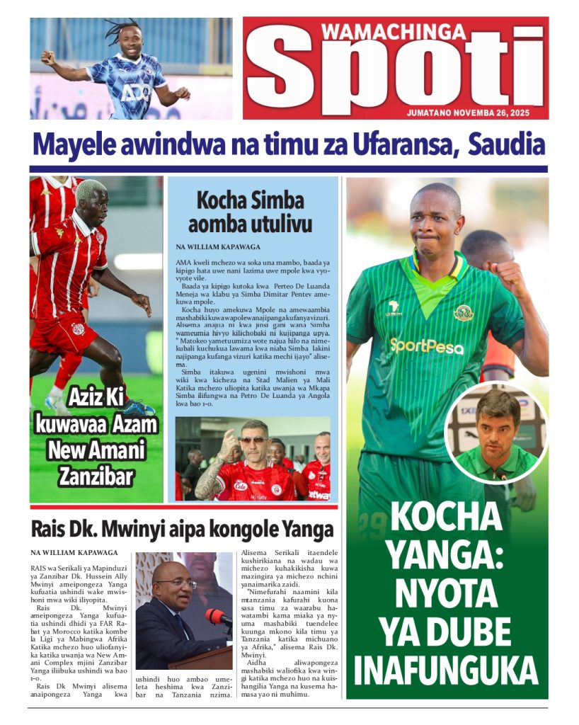 HomeHABARI MAGAZETI YA LEO JUMATANO NOVEMBA 26, 2025 Misalaba Media November 25, 2025 0 🥃🍶 TUMIA VINYWAJI BORA VYA EAST AFRICAN SPIRITS – BEI RAFIKI, LADHA SAFI BILA HARUFU MBAYAWasiliana nasi:📍 East African Spirits (T) Ltd📞 +255 767 650 806 | +255 652 096 254 You Might Like View all
