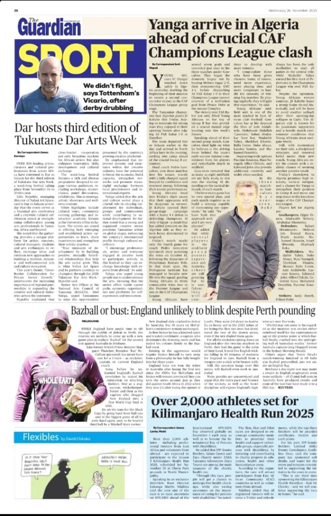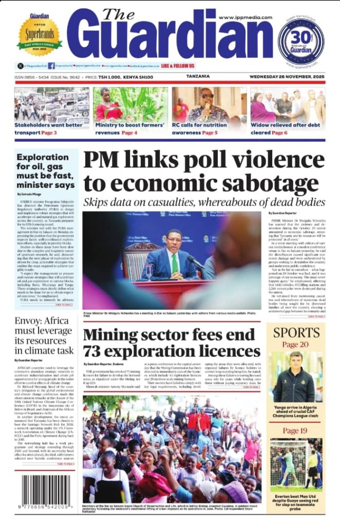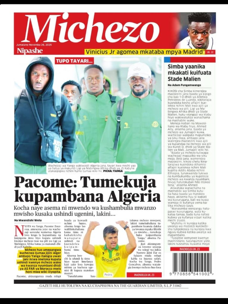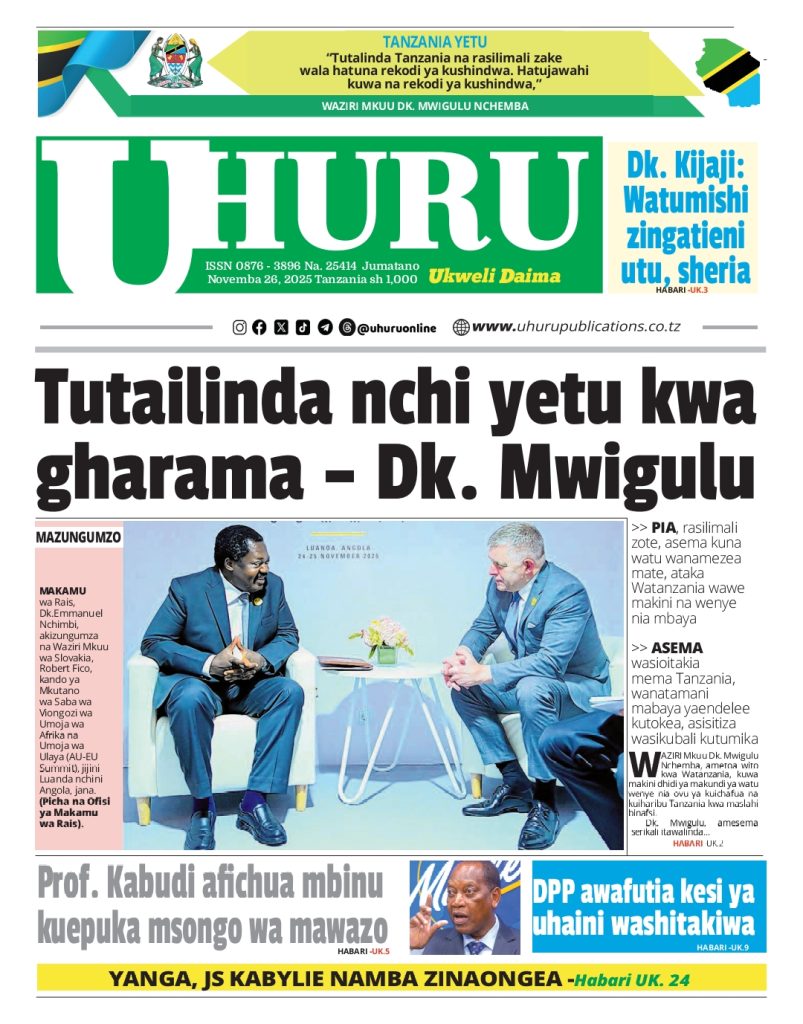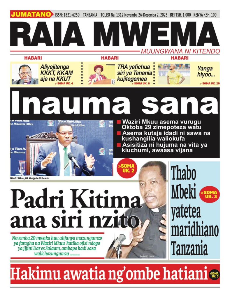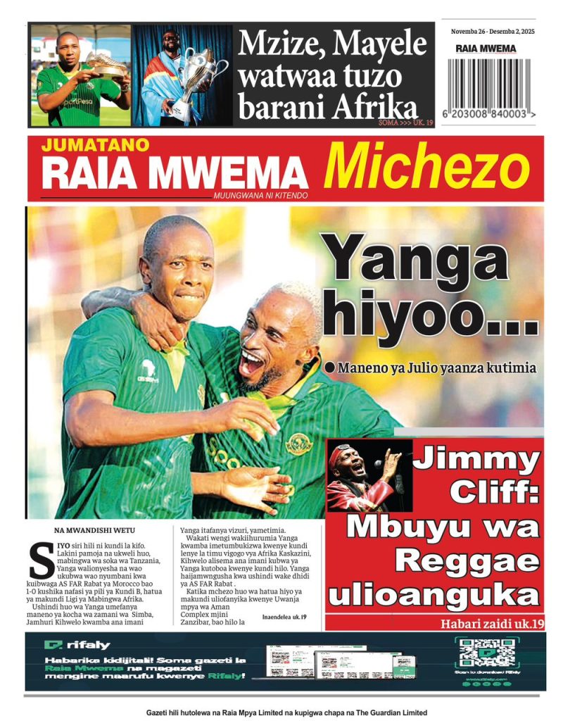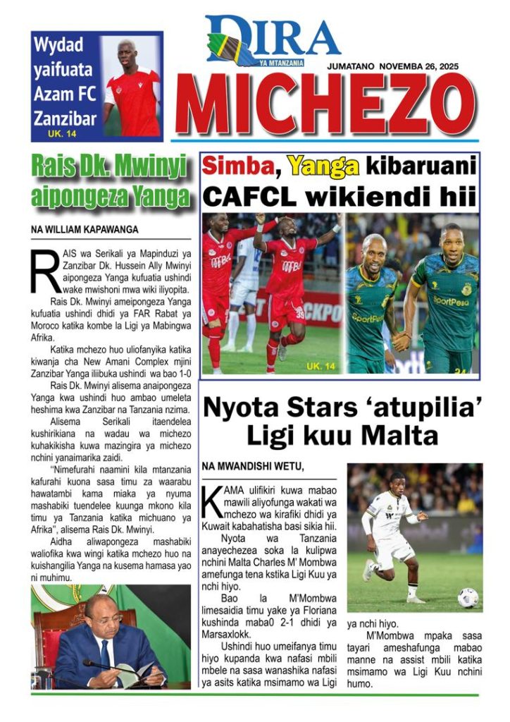 HomeHABARI MAGAZETI YA LEO JUMATANO NOVEMBA 26, 2025 Misalaba Media November 25, 2025 0 🥃🍶 TUMIA VINYWAJI BORA VYA EAST AFRICAN SPIRITS – BEI RAFIKI, LADHA SAFI BILA HARUFU MBAYAWasiliana nasi:📍 East African Spirits (T) Ltd📞 +255 767 650 806 | +255 652 096 254 You Might Like View all