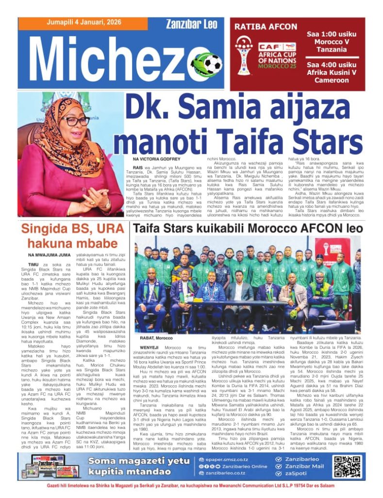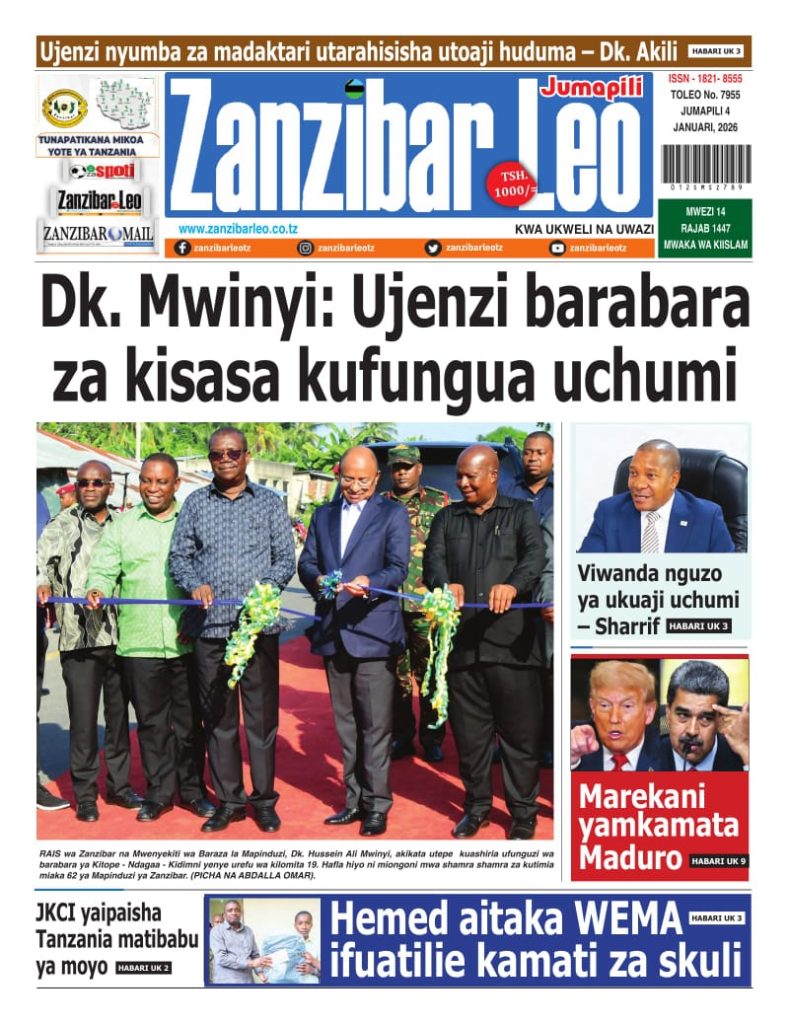 HomeHABARI MAGAZETI YA LEO JUMAPILI JANUARI 4,2026 Misalaba Media January 03, 2026 0 🥃🍶 TUMIA VINYWAJI BORA VYA EAST AFRICAN SPIRITS – BEI RAFIKI, LADHA SAFI BILA HARUFU MBAYAWasiliana nasi:📍 East African Spirits (T) Ltd📞 +255 767 650 806 | +255 652 096 254 You Might Like View all