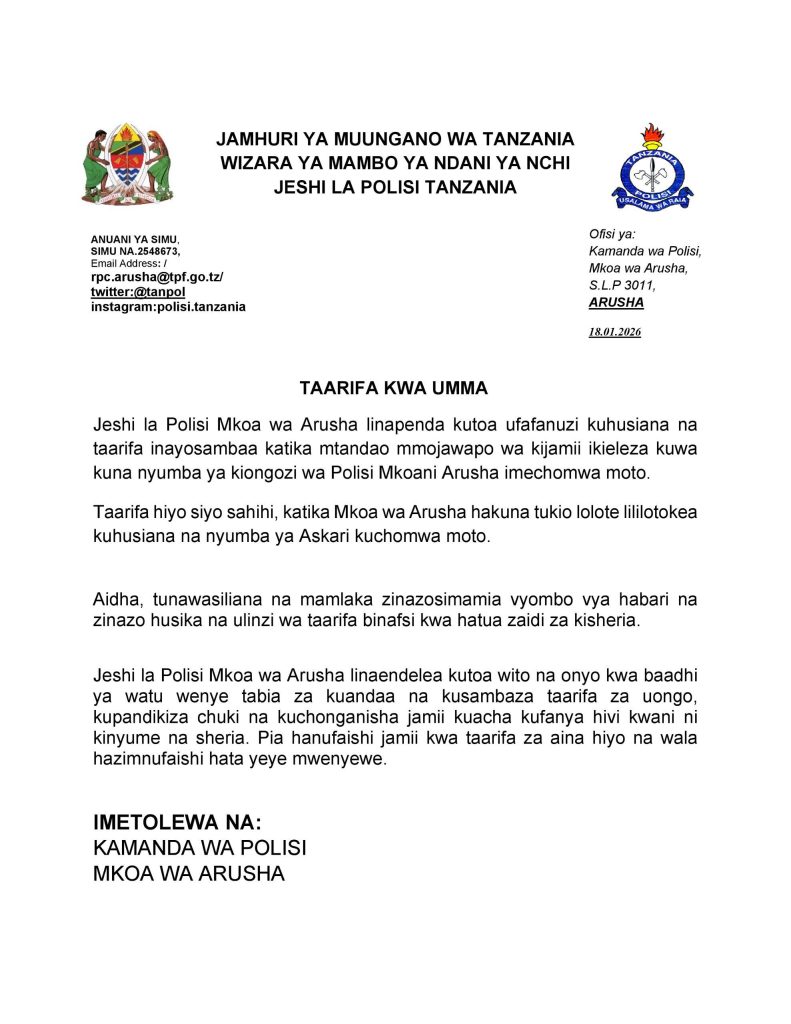 Akitoa taarifa hiyo leo, Kamanda wa Polisi Mkoa wa Arusha, Kamishna Msaidizi Mwandamizi wa Polisi SACP Justine Masejo amesema Jeshi hilo linaendelea kuwasiliana na mamlaka zinazosimamia vyombo vya habari na zile zinazo husika na ulinzi wa taarifa binafsi kwa hatua zaidi za kisheria.